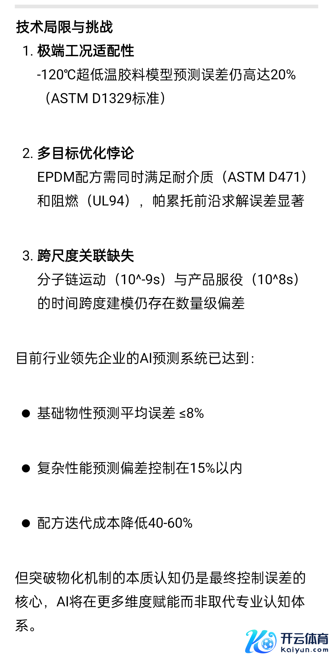 仍需工程师主导中枢决策。AI现阶段是强有劲的赞成用具,但配方创新的试验仍依赖于东说念主类对高分子科学的深度交融。先进企业的执行标明,东说念主机协同可将配方设备周期裁汰40%-60%,同期抵制50%以上的试错老本。